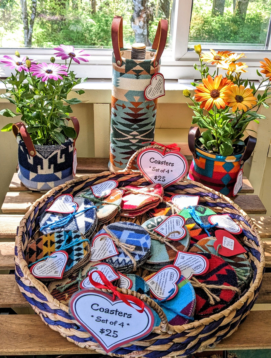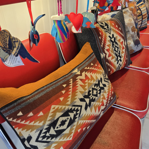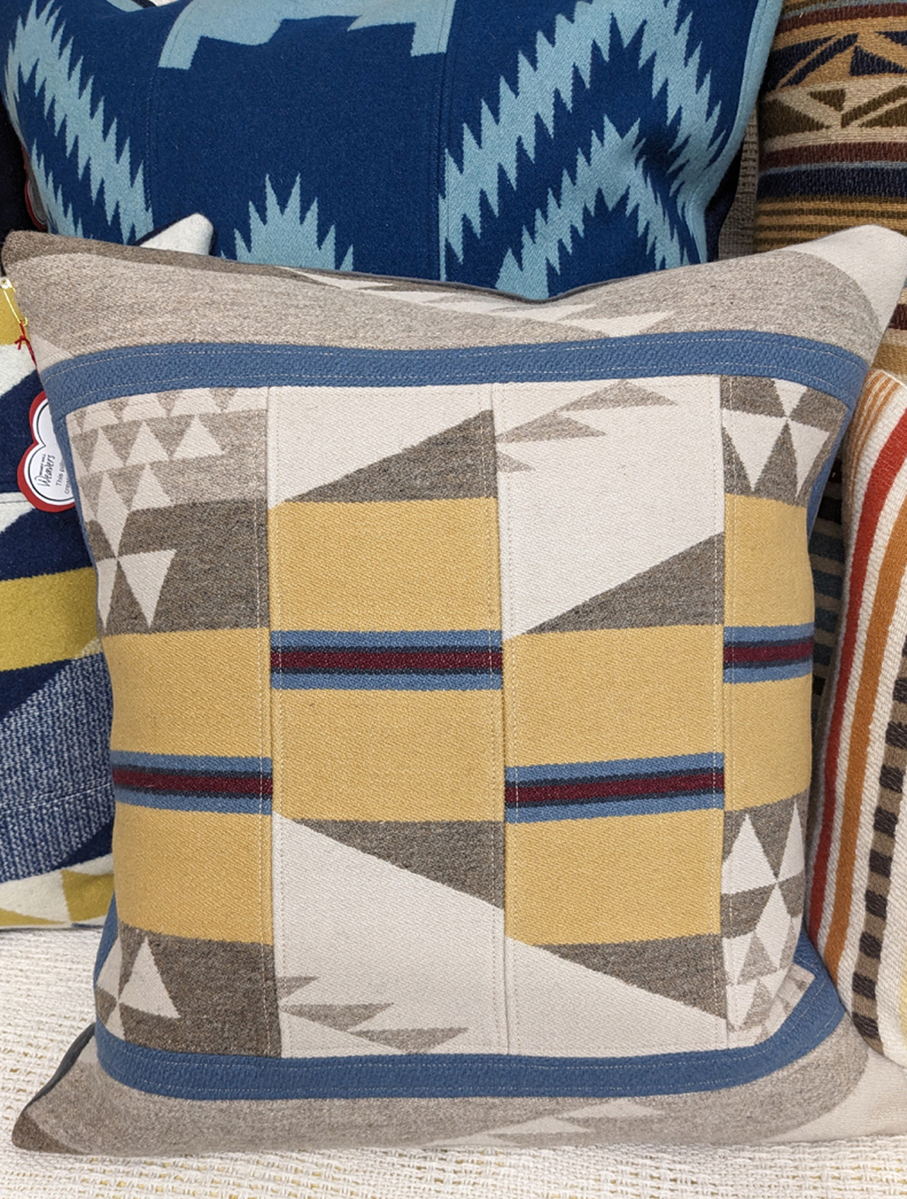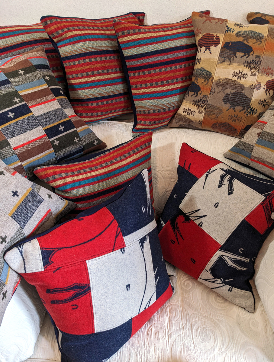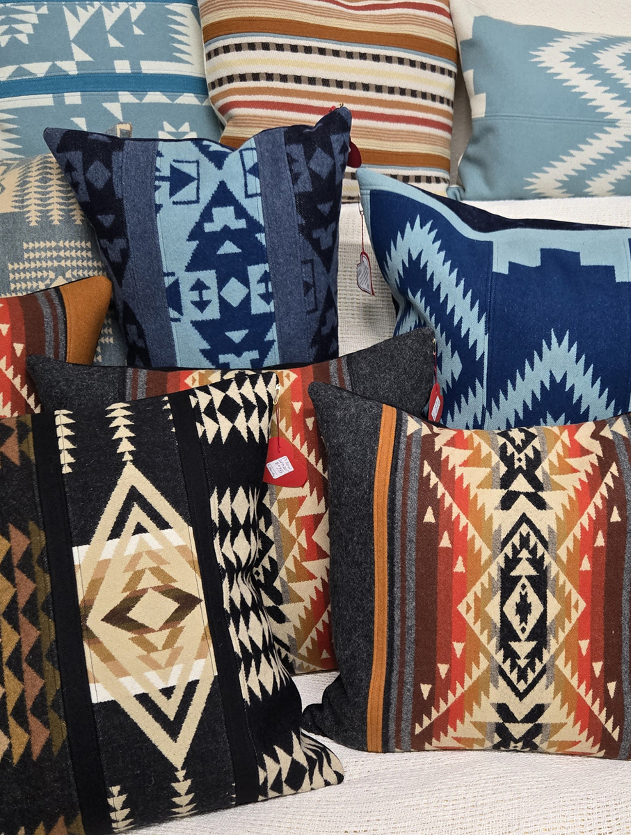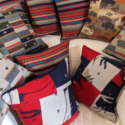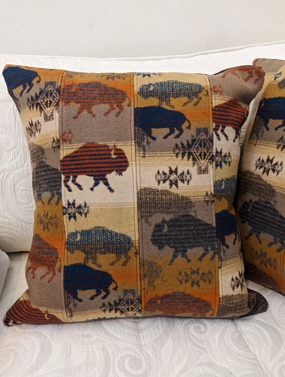 Brighten your home with beautiful hand crafted pillows created from Pendleton© wool fabric remnants. I also design wine and flower totes, plant baskets, coasters, and ornaments, all made from quality Pendleton© wool fabric.
