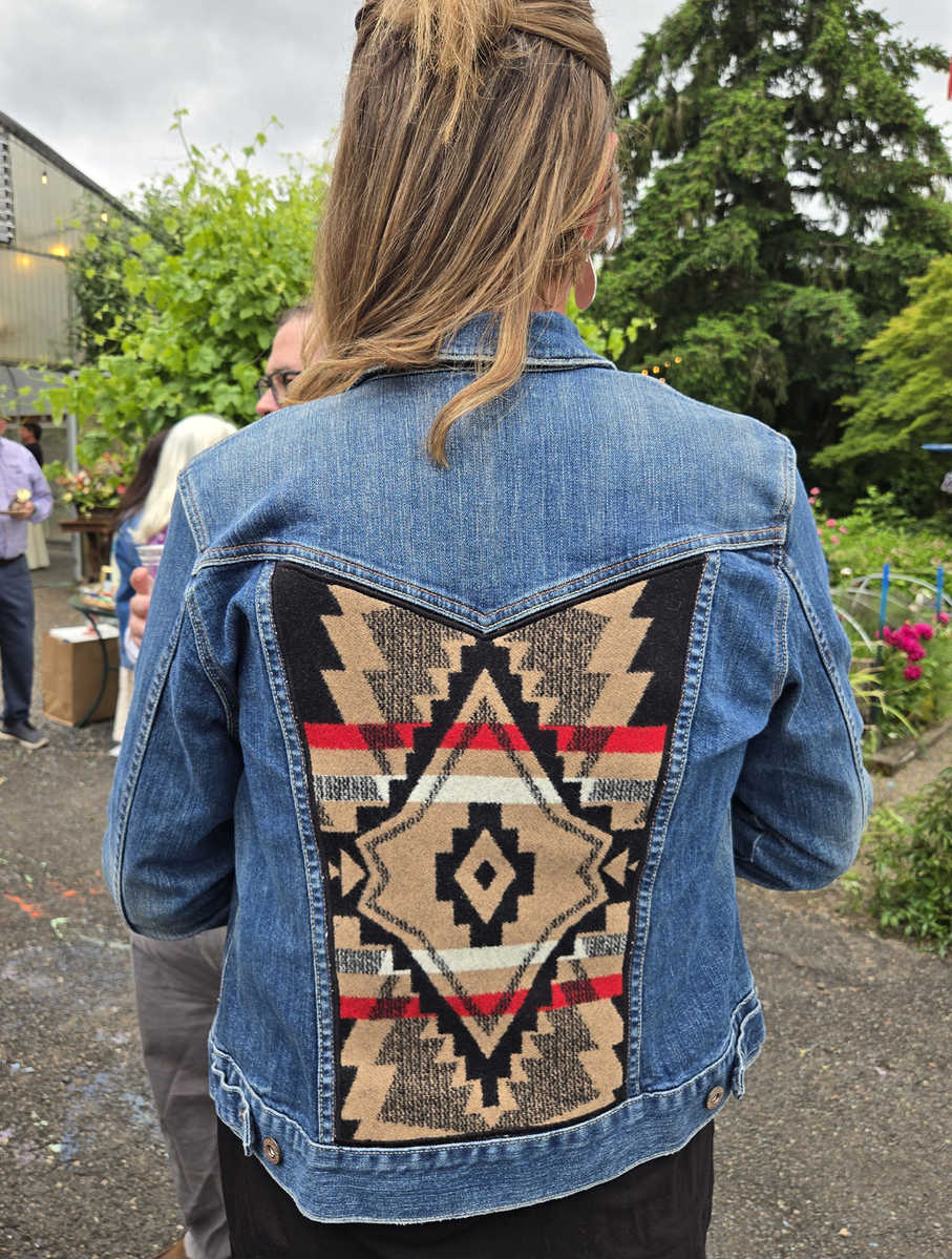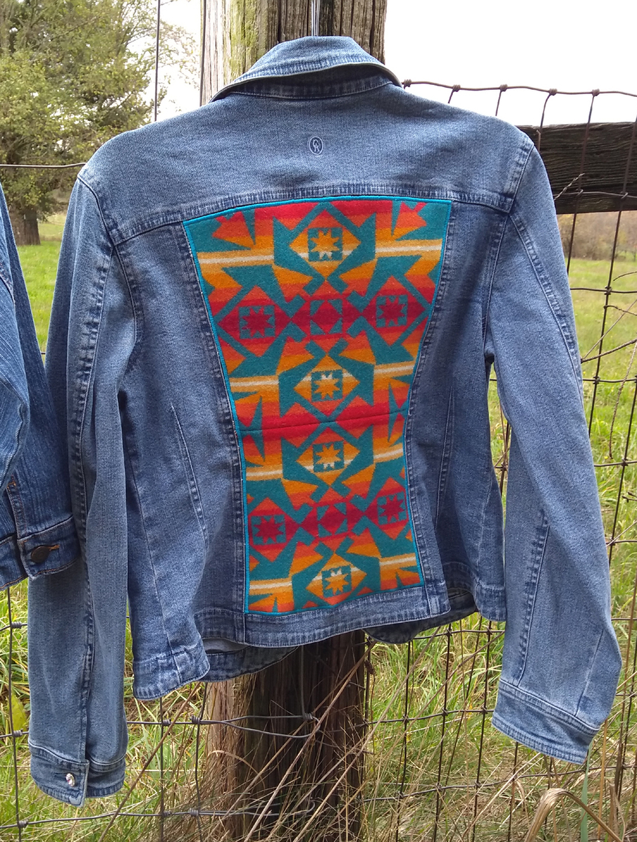 I take denim jackets to the next level using Pendleton© wool fabric which I expertly applique to the back panel. Choose a finished jacket or customize your own with your choice of colors and patterns.